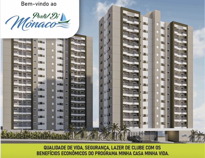 O Portal Di Monaco é um residencial pensado para proporcionar qualidade de vida e acessibilidade, seguindo o conceito econômico do programa Minha Casa Minha Vida. Composto por duas torres imponentes de 15 pavimentos, cada uma com 8 apartamentos por andar, o projeto se destaca pela excelente distribuição de espaço e acabamentos de qualidade.