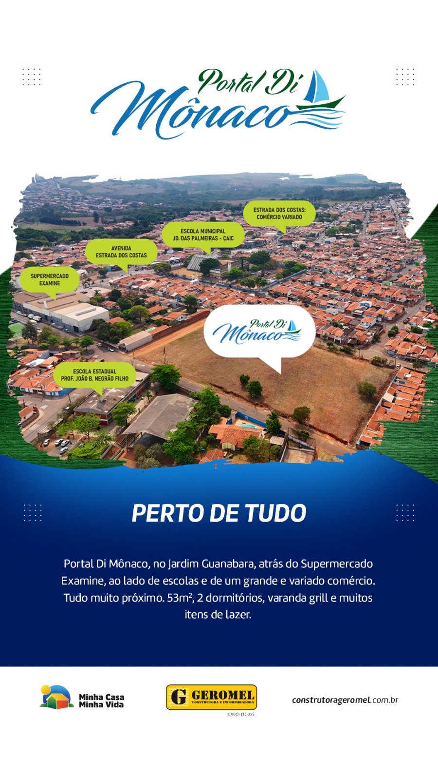 O Portal Di Monaco está situado no bairro Jardim Guanabara, uma região que cresce rapidamente e se valoriza cada vez mais. Próximo a escolas, supermercados e vias de fácil acesso, o empreendimento garante comodidade para o seu dia a dia e excelente infraestrutura ao redor. A poucos minutos do centro da cidade, você terá tudo o que precisa sem abrir mão da tranquilidade de morar em uma região residencial.